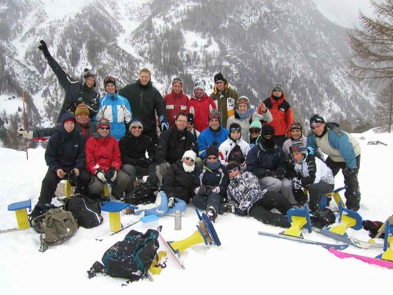 Nachdem die Skisachen ausgepackt waren, ging es auch schon zur ersten Wanderung Richtung Skipiste, diesmal allerdings nicht mit Skiern, sondern mit selbstgebauten Skibobs. Auf diesen fuhren wir mit viel Spaß die zuvor erklommenen 500 Höhenmeter talwärts.