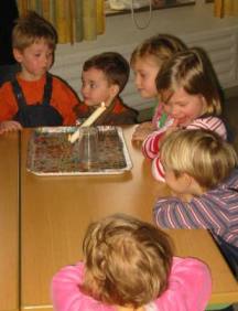 Viele Einrichtungen beteiligen sich an der Erprobung der neuen Bildungsvereinbarung NRW (2002/2003). Im Kapitel „Bildungsbereich Natur“ und kulturelle Umwelt(en)“ ist u.a. die Rede von der „vielsinnlichen“ Wahrnehmung, die bei jedem Kind zunehmend differenzierter ausgeprägt sein soll. Die Bildungsvereinbarung hält außerdem die Auseinandersetzung mit naturwissenschaftlichen Themen für notwendig, um das naturwissenschaftlich-logische Denken bereits im frühen Kindesalter zu fördern. |