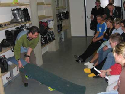 Nach dem Abendessen trafen wir uns jeden Abend im Skikeller zu den Referaten, die die Schülerinnen und Schüler bereits in Bochum vorbereitet hatten und die neben den Praxisanteilen eine Teilleistung dieses Skipraktikums darstellten. Es wurde über Themen wie z.B. Skiausrüstung, Sicherheitsregeln des alpinen Skilaufs, Lawinenkunde, Ökologische Probleme des Skitourismus etc. referiert | |